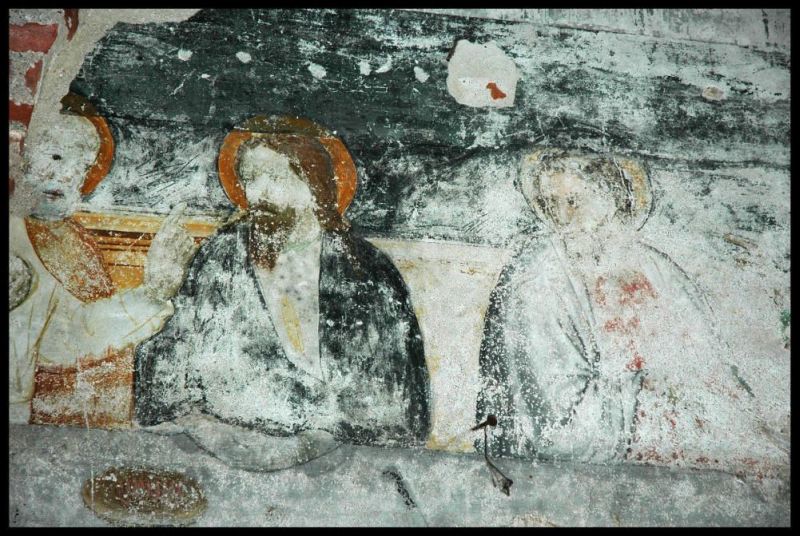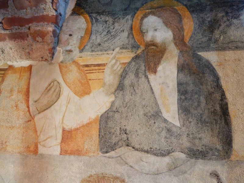 I due affreschi che si sovrappongono, manifestano l’appartenenza a periodi storici differenti, evidenziando ancora una volta la ricca presenza, all’interno del monastero, di apparati decorativi sulle pareti dei locali, sino ad oggi sottovalutati sia sul piano documentario che conservativo.